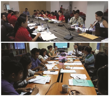 WHO conducted orientation sessions for monitors who will check compliance of health facilities to the Switch. Above: With chapter representatives of the Philippine Red Cross; Below: With staff from WHO, UNICEF and DOH.