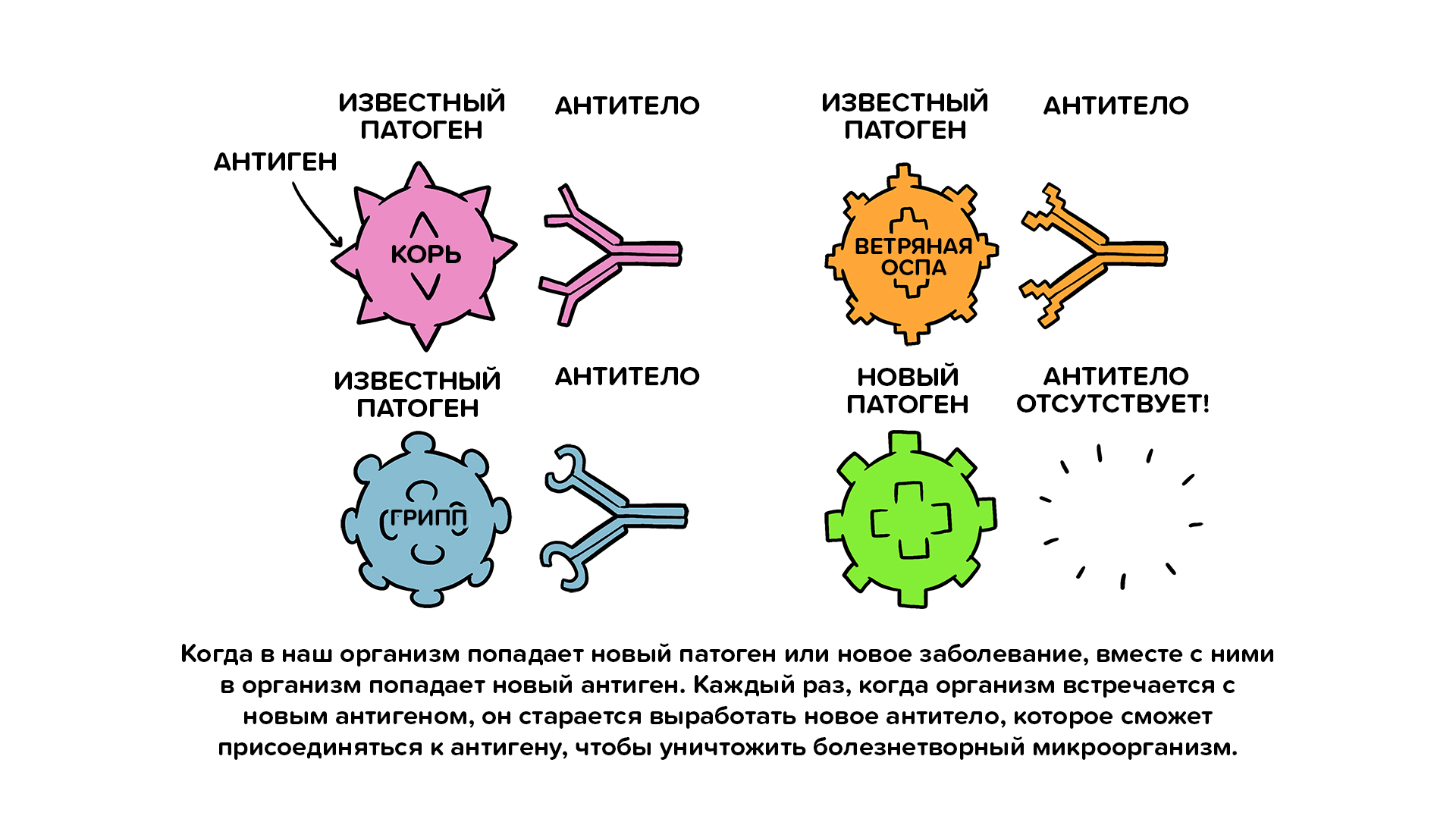 Элемент патогена, вызывающий выработку антител, называется антигеном. Антитела, образующиеся в ответ на антиген, являются важной частью иммунной системы.